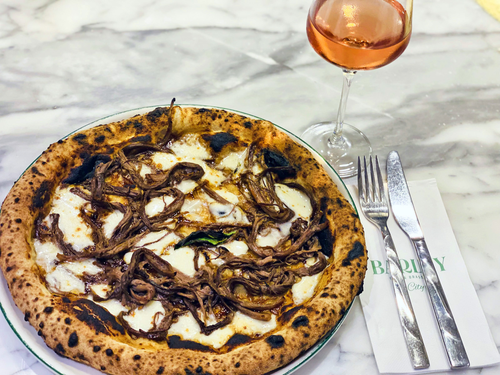 Dana kaburga, mozarella, parmesan, fesleğen ve broil sos ile