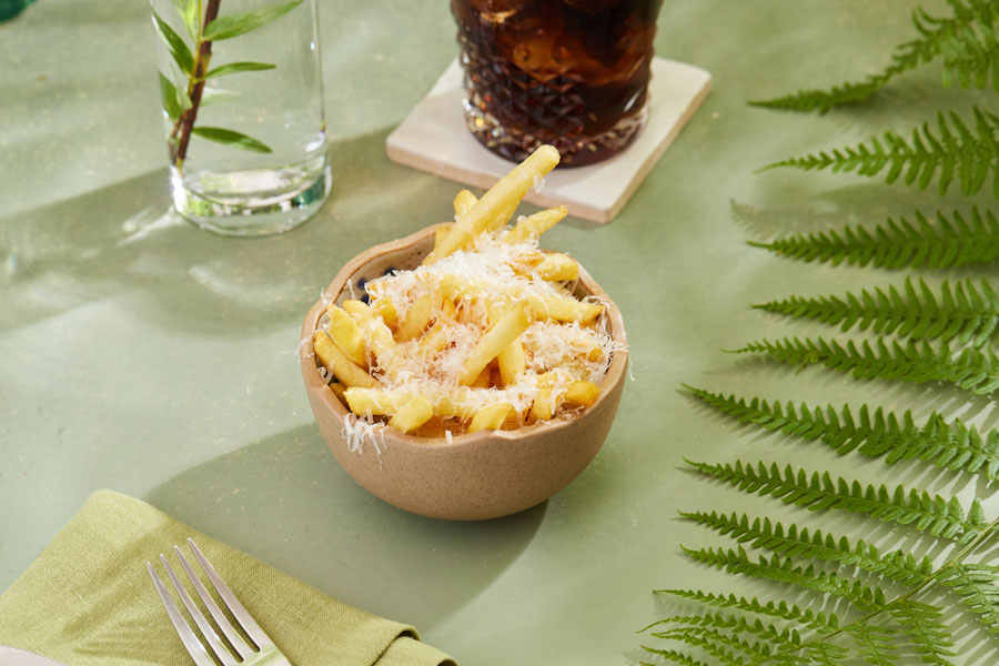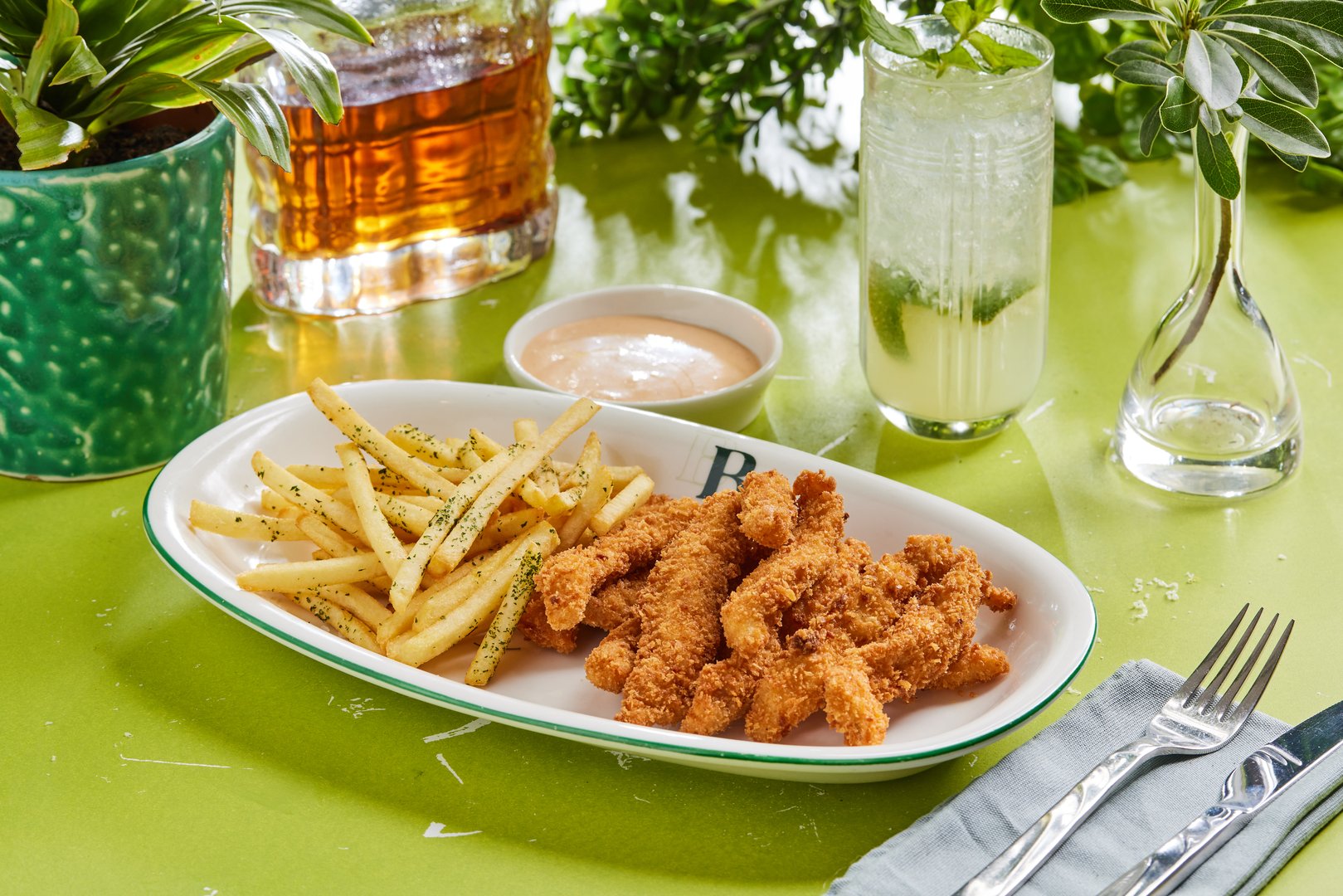 Panelenmiş julien tavuk göğsü,patates kızartması,tempura aioli sos