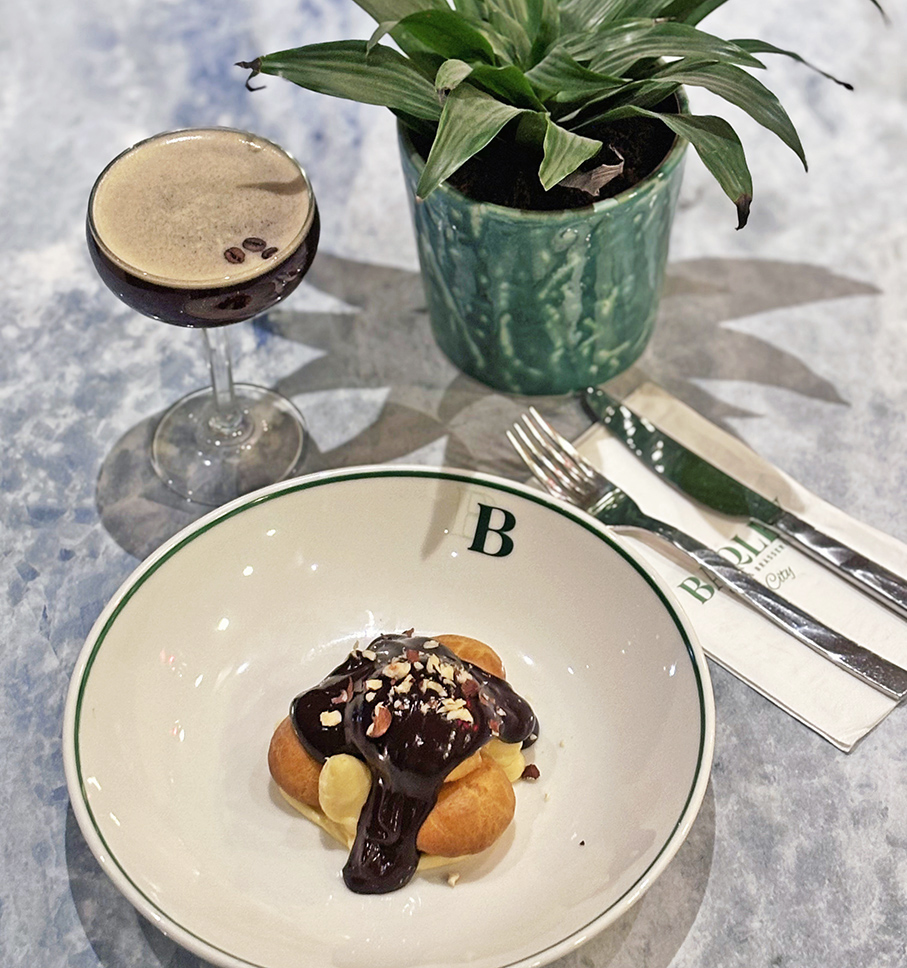 Pastacı kreması,çikolata sos ve kavrulmuş fındık
