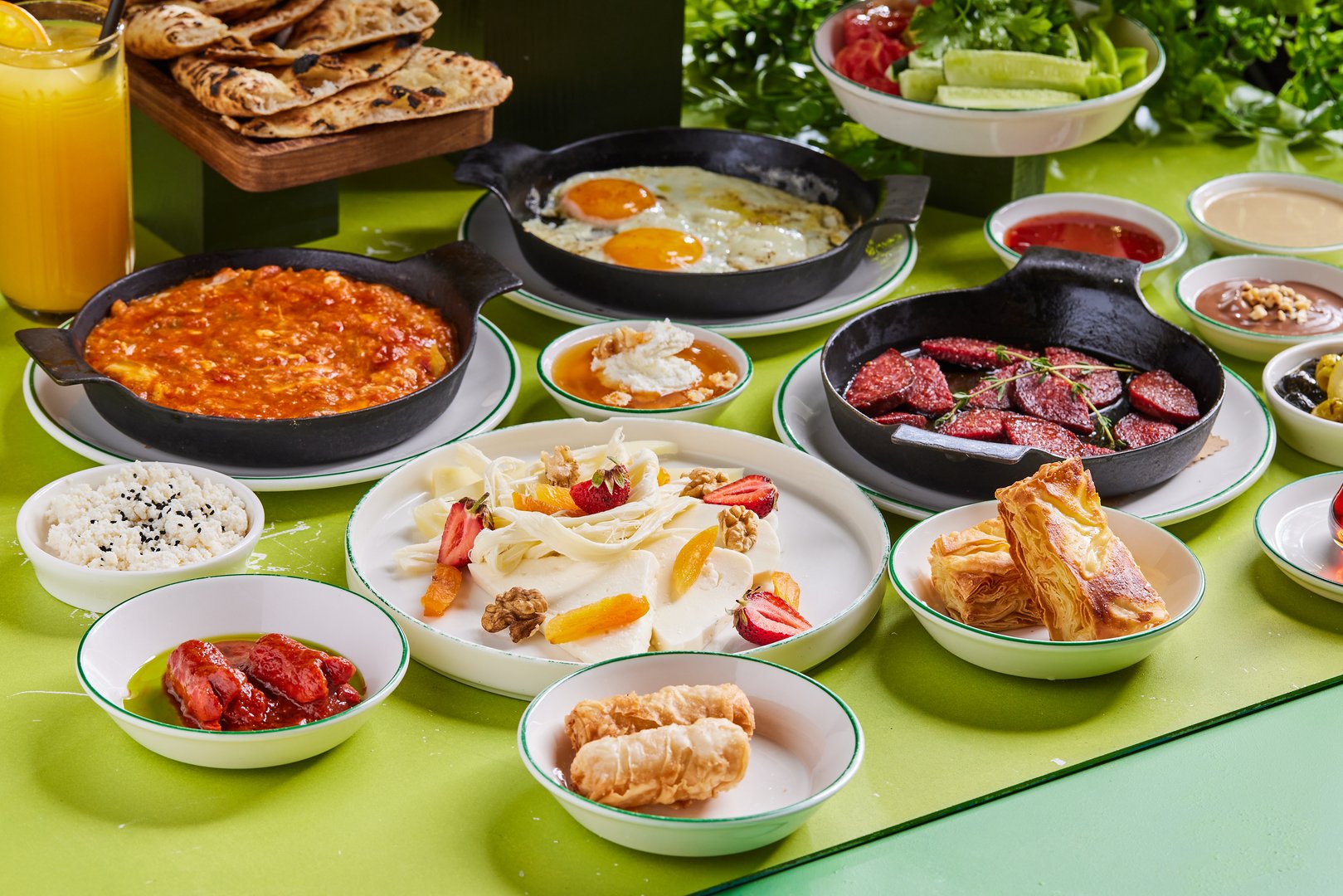 - Söğüş tabağı, - Çeçil Peyniri, - Eski Kaşar, - Tulum Peyniri, - Lor Peyniri, - Ezine Peyniri, - Siyah Zeytin, - Yeşil Zeytin, - Nutella, - Bal-Kaymak, - Hindi Füme, - Dana Salam, - Çilek Reçeli, - Tahin Pekmez, - Göz Yumurta, - Sucuk, - Sıcak Ekmek, - Menemen, - Sigara Böreği, - Izgara Köy Biberi, - Su Böreği, - Soslu Sosis Tava, - Simit, - Poğaça, - Sınırsız Çay ile